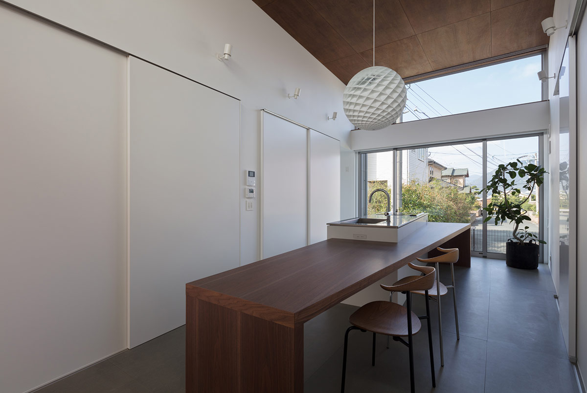 玄関を抜けるとすぐに、この住宅のメインであるキッチンダイニングが姿を現します。コンパクトな住宅ながら、いかに空間を広く、心地よく見せるかにこだわり設計。