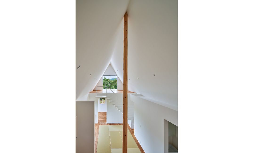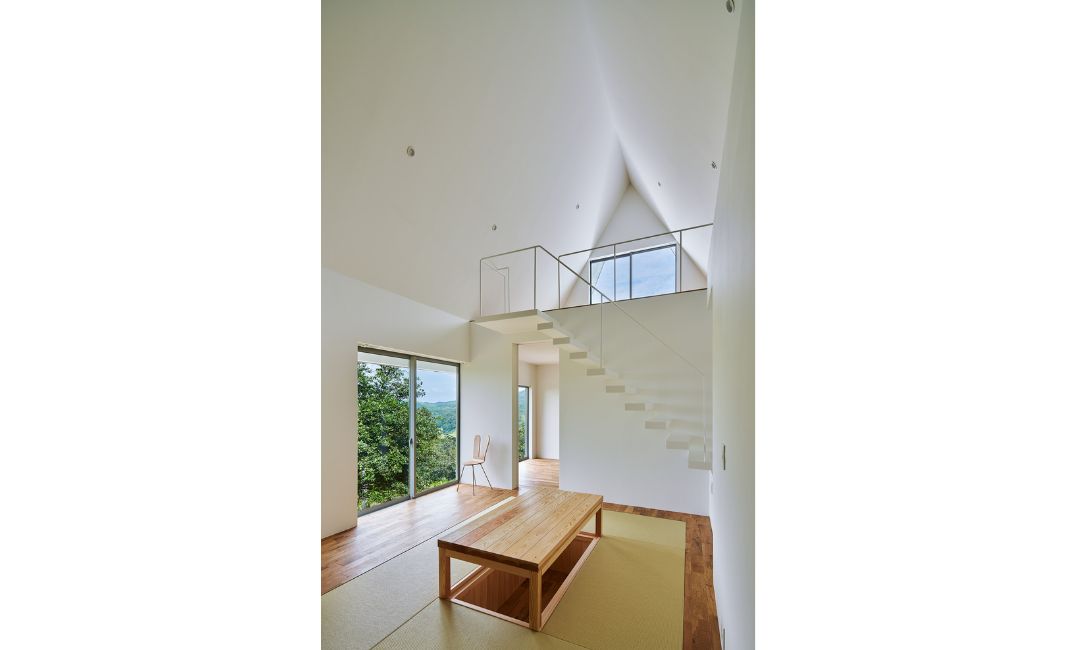 『忌部の離れ』は、絵を飾るため内装はシンプルな色味にしたいという希望を受けて、白を基調とした空間にしました。その中で階段も閉じた専用空間にして面積をとってしまうよりも、シンプルで壁と一体化したような白い階段にして、室内に見せるデザインにしようと考えました。