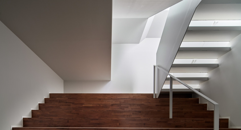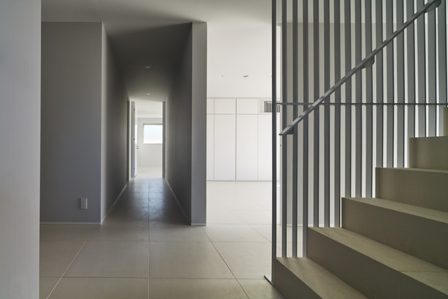 『静かな光の家』は玄関入ってすぐに階段があり、この部分をインパクトのある場として演出したいと考えました。