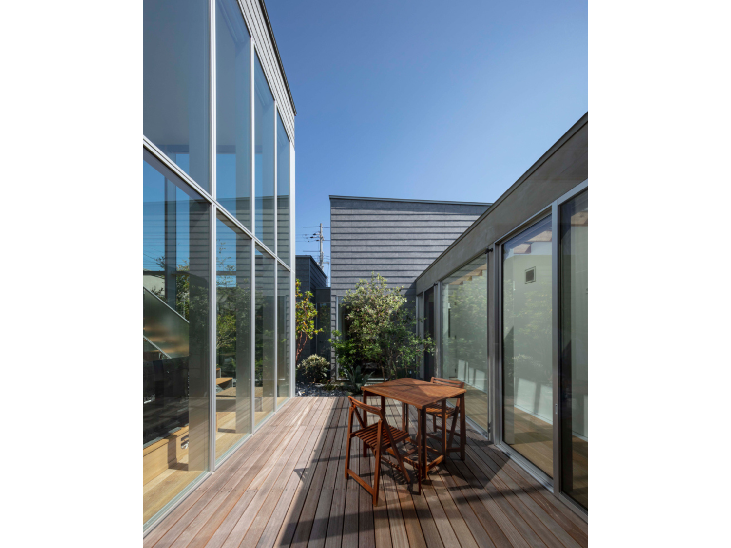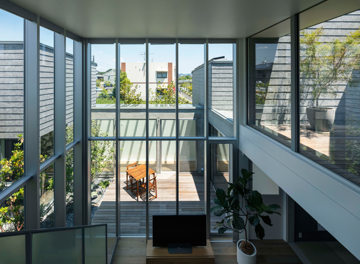 外部からのプライバシーを確保したいという要望から中庭を設計し、外からの目線を気にしない開放感ある住宅を実現しました。