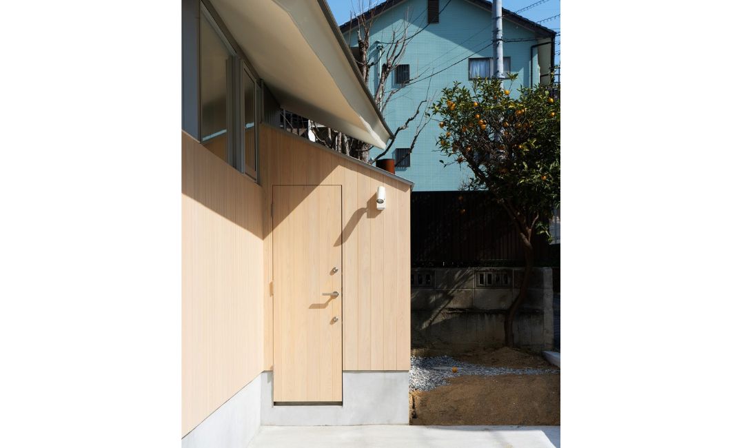 写真2枚目右側の小さな小屋のようなような部分がパントリーで、ここで靴を脱いで家に入ることができます。荷物が多くても玄関まで回らなくても済み、すぐに買ってきたものをしまえるという買い物動線を考えて設計しました。また、駐車場も含めて家全体がぐるりと回れる回遊動線になり、便利ですし、ちょっと楽しい工夫かと思います。