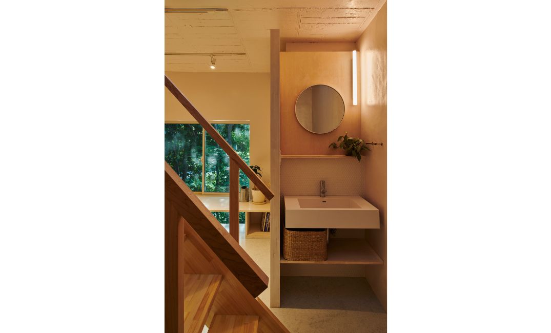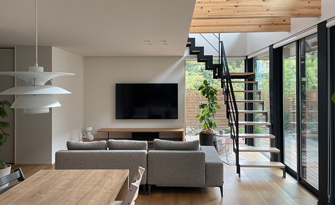 この『清澄長屋』は、来客も比較的多いため、3階の寝室や水回りなどのプライベート空間を通らず、下のフロア(1階玄関、2階LDK)で来訪者の行動が完結できるようにしたいと考えました。