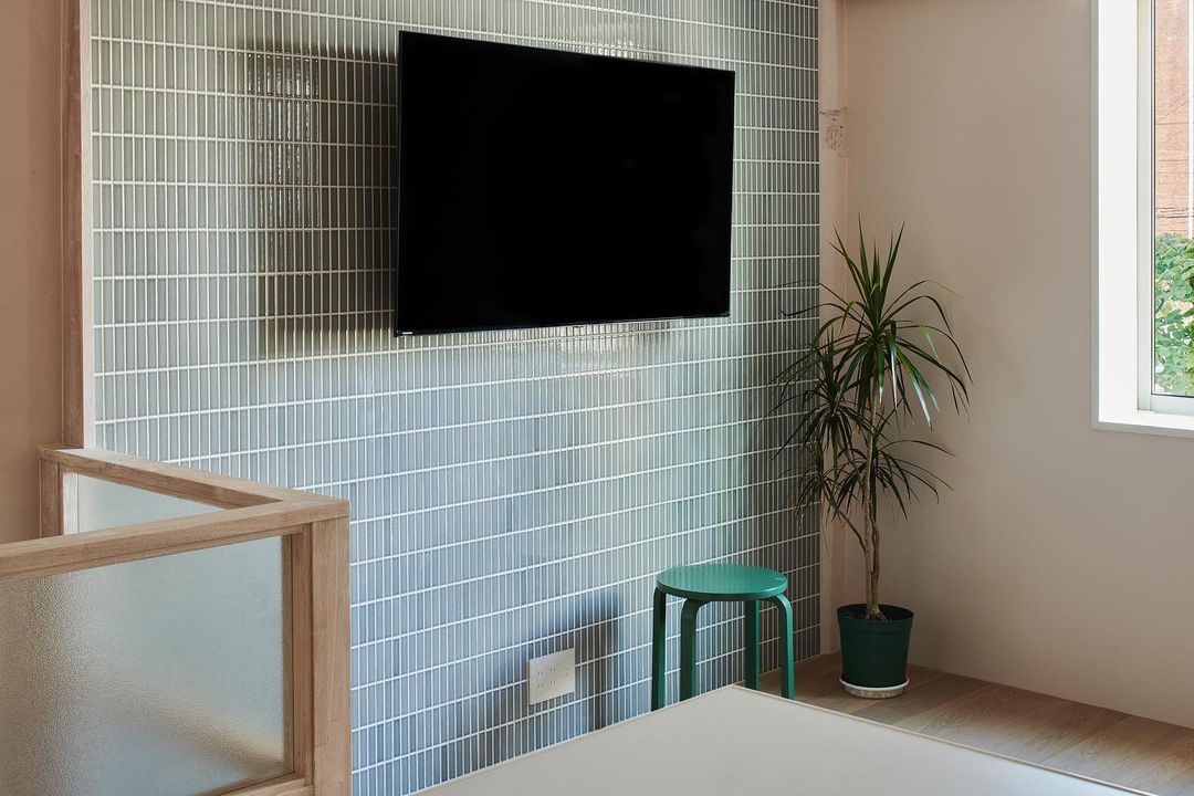 タイルの質感が空間に艶もプラスし、壁自体がアートのような佇まいになっています。