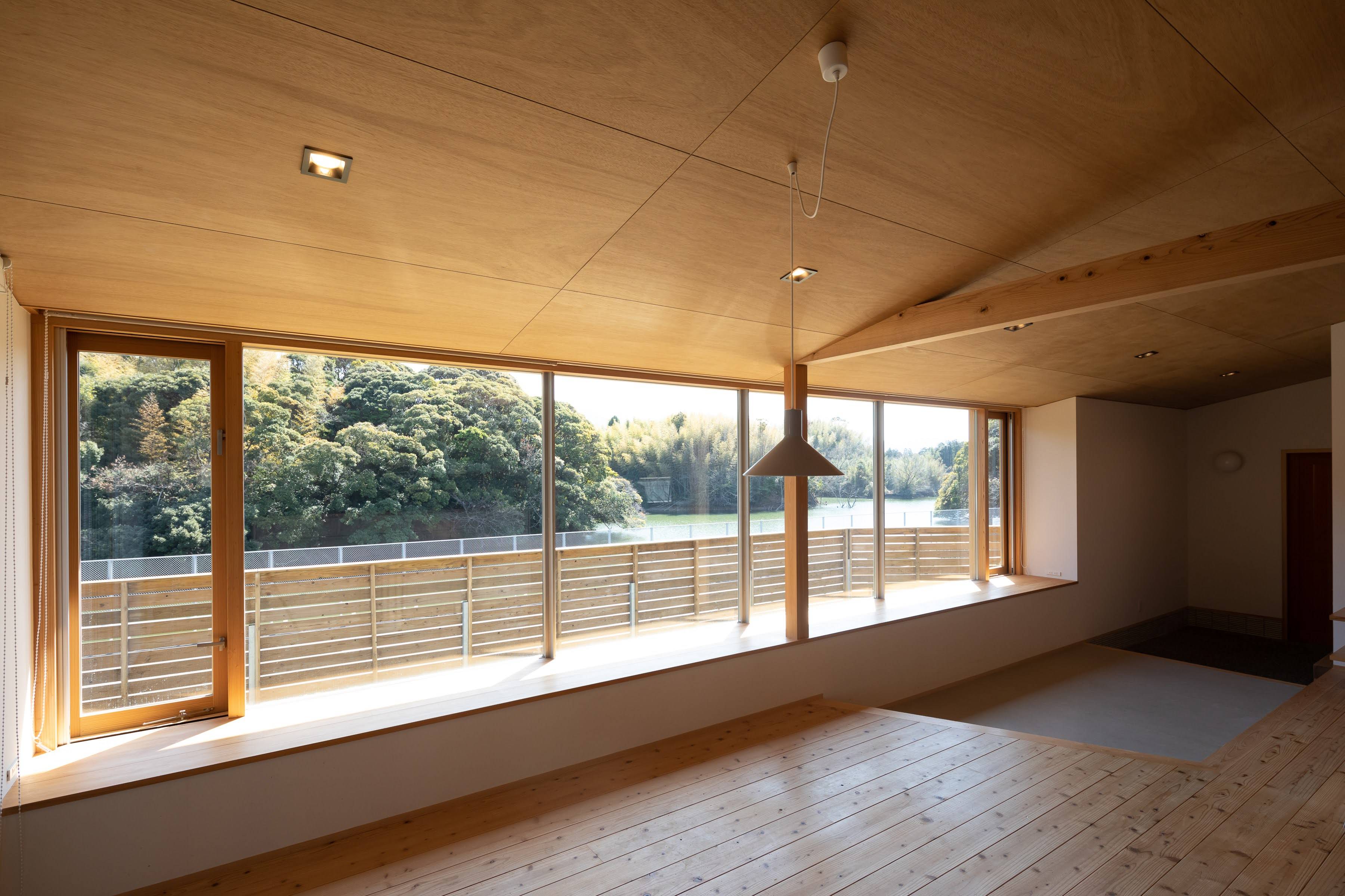 『日出町の家』では広い土間スペースのある玄関が欲しいとのご要望を施主の方から頂きました。そこでいっそ家の中をめぐる通り土間にすることを考え、さらに遊び心を加えて、土間と障子で区切られた屋内の離れ和室を設けることを提案しました。