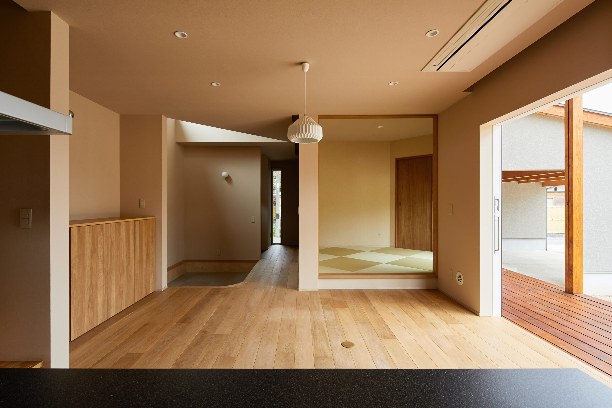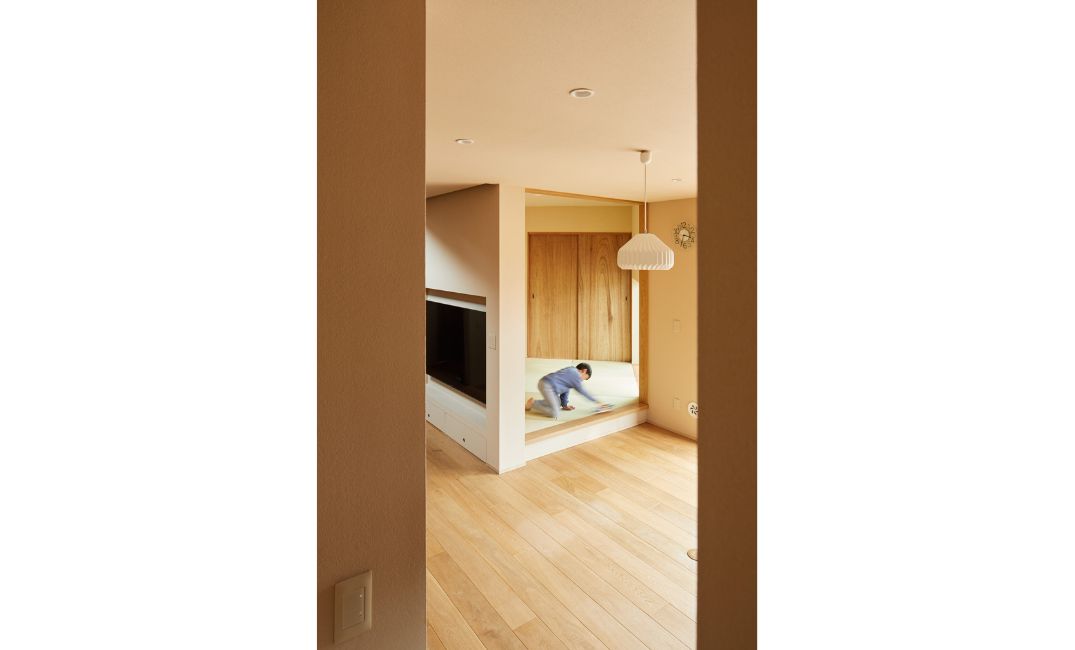 そこで、室内は落ち着いていながらも少し遊び心を持たせたいと思い、その中の一つとして和室の畳をダイヤ模様に敷きました。