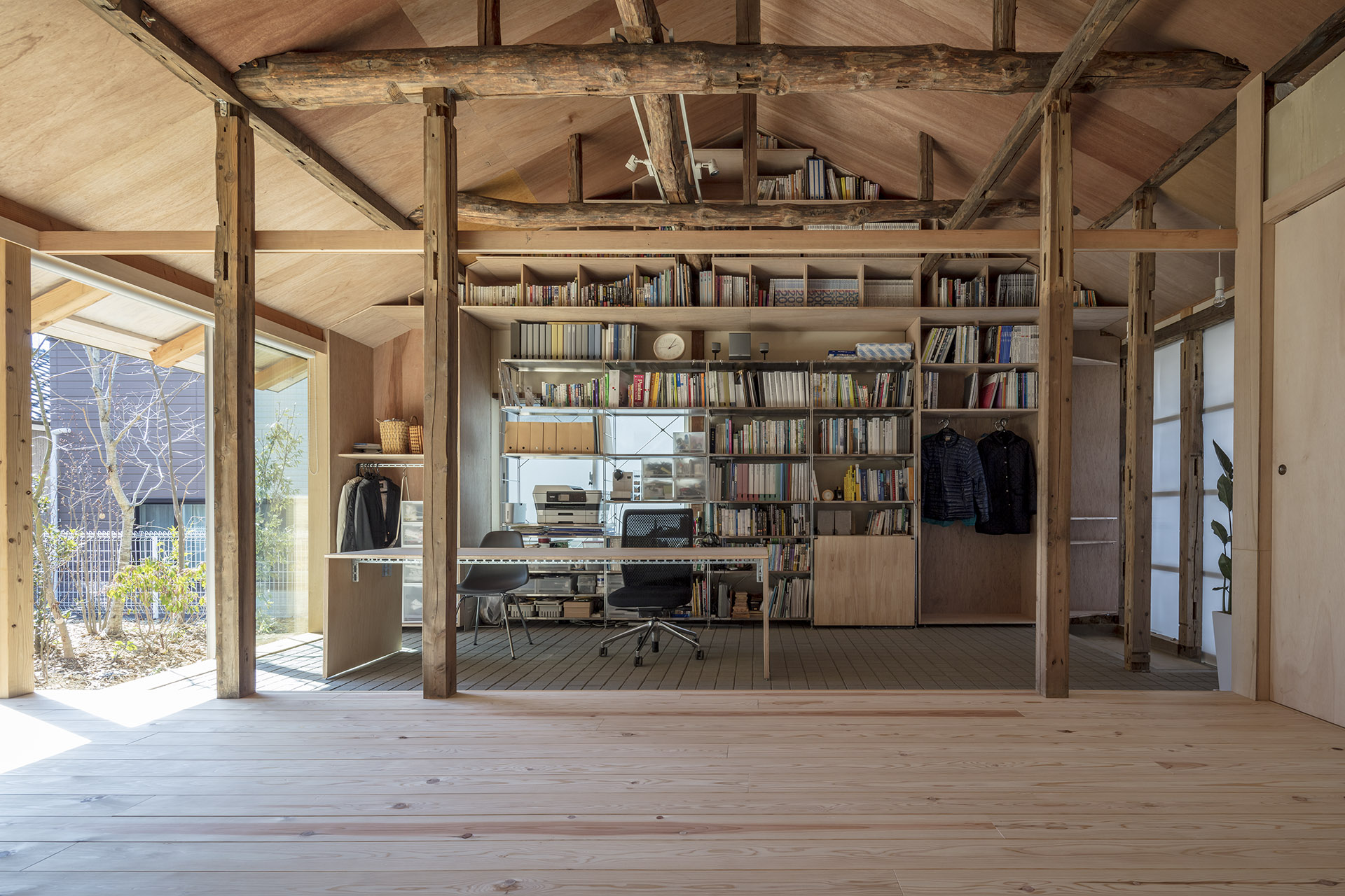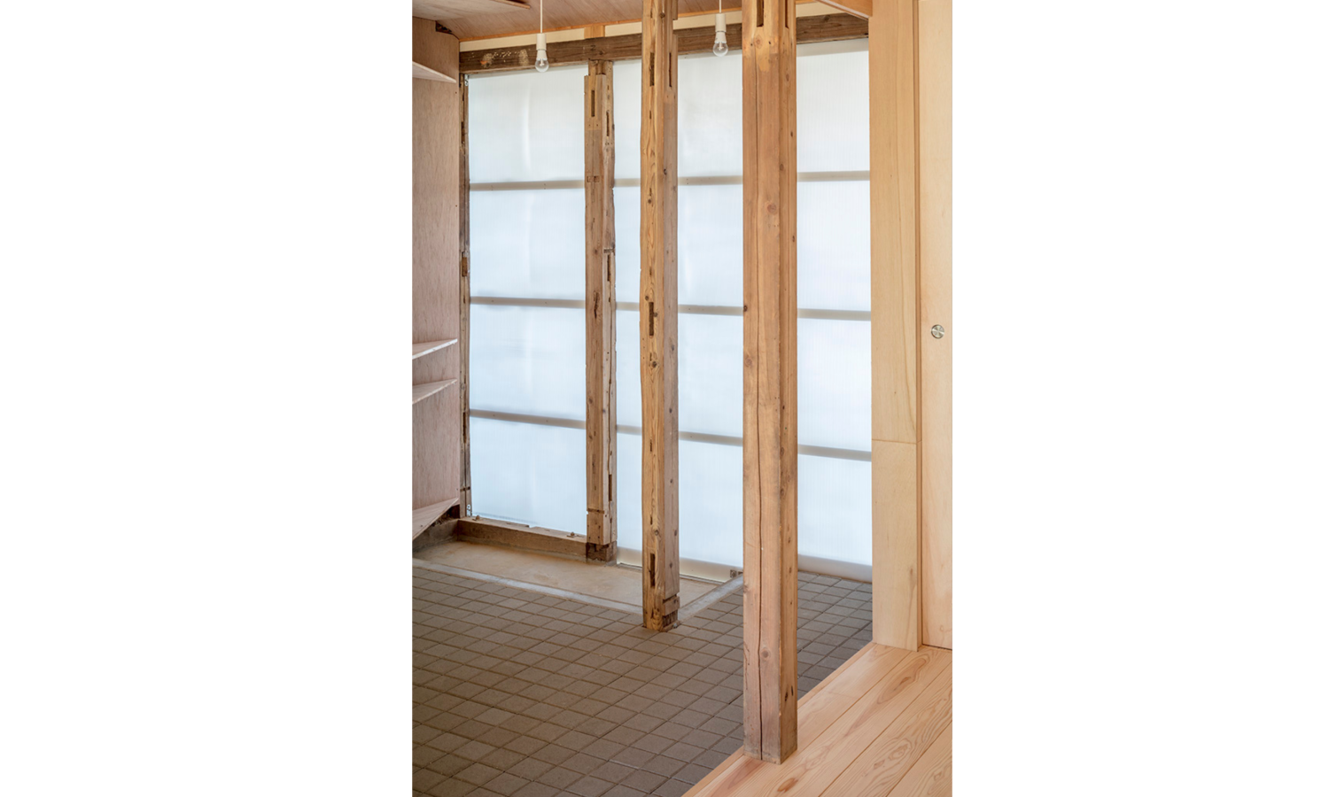 リノベーションを行った築58年の住宅。半透明の白い玄関はこのリノベーションの特徴のひとつとなりました。
