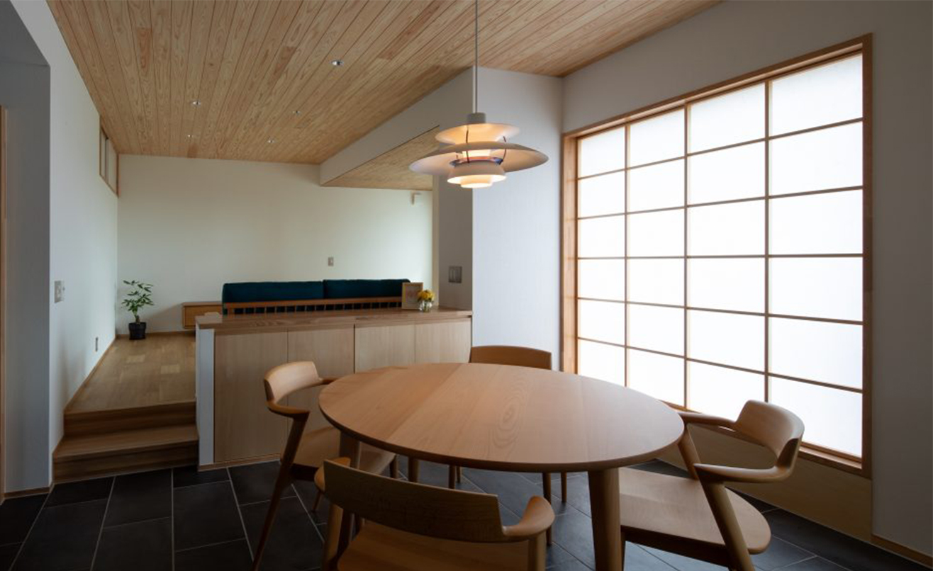 平屋だけれど、白と木のバランスがよく、おしゃれな空間になりました。