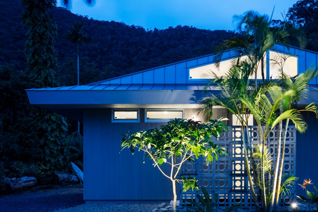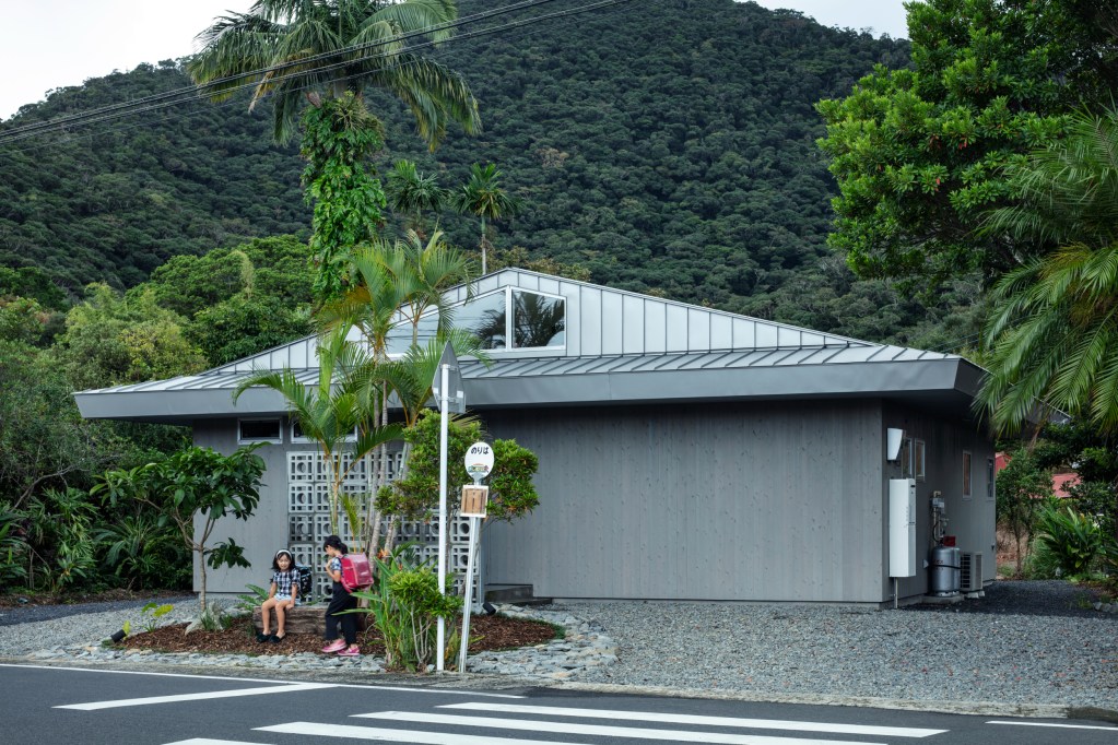 『奄美大島の家型』の玄関には、家の象徴となる花ブロックの軽やかな塀があります。