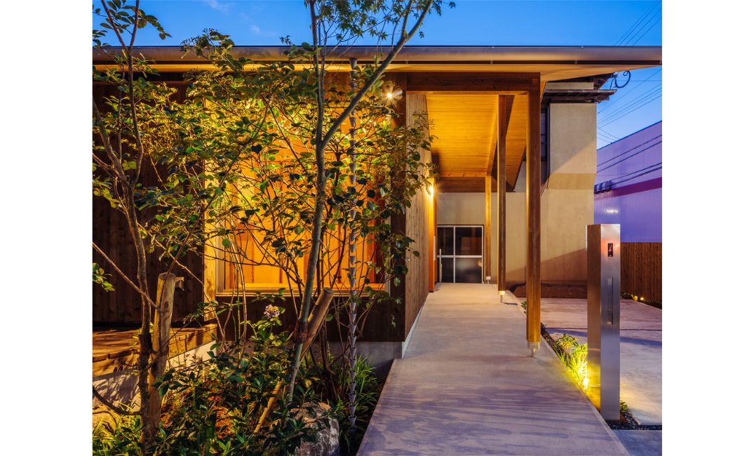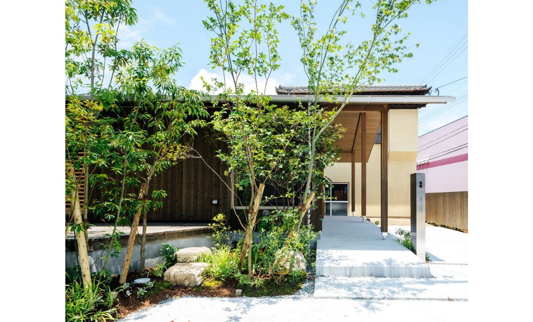 大きな軒と植栽が外部の視線からも家を優しく守ってくれる居心地の良い家になりました。
