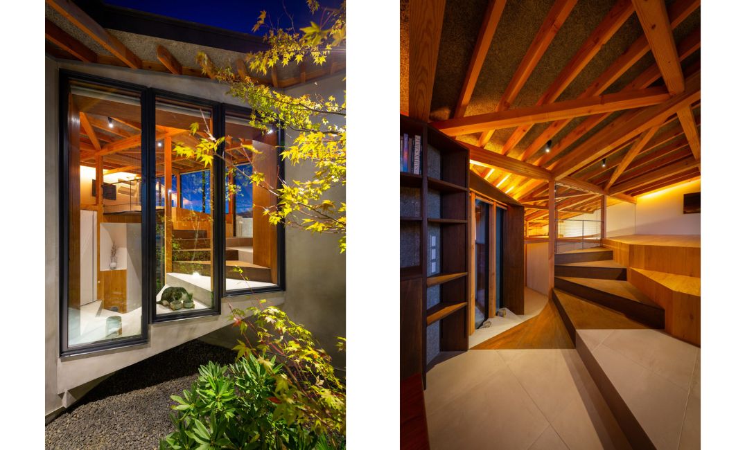 また、ただの通路ではなくそれ自体が居場所になるように通常の倍近く幅広のゆとりある設計をしており、段差に腰掛けて座ったり、上階ではリビングの小上がりのように過ごせる空間になっています。高低差が激しすぎると逆に生活しにくくなってしまうこともあるので、住みやすさにつながる段差を見極めることも必要でした。
