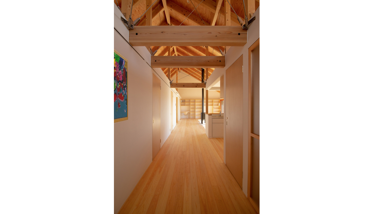 リビングにはお子様のスタディースペースやクリエーティブスペースを設け、廊下は敢えてつくらず、ギャラリースペースの位置づけとなっています。