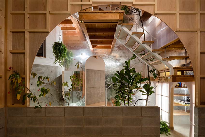玄関からこのインナーガーデンまではジグザグとした路地のような廊下で繋がります。