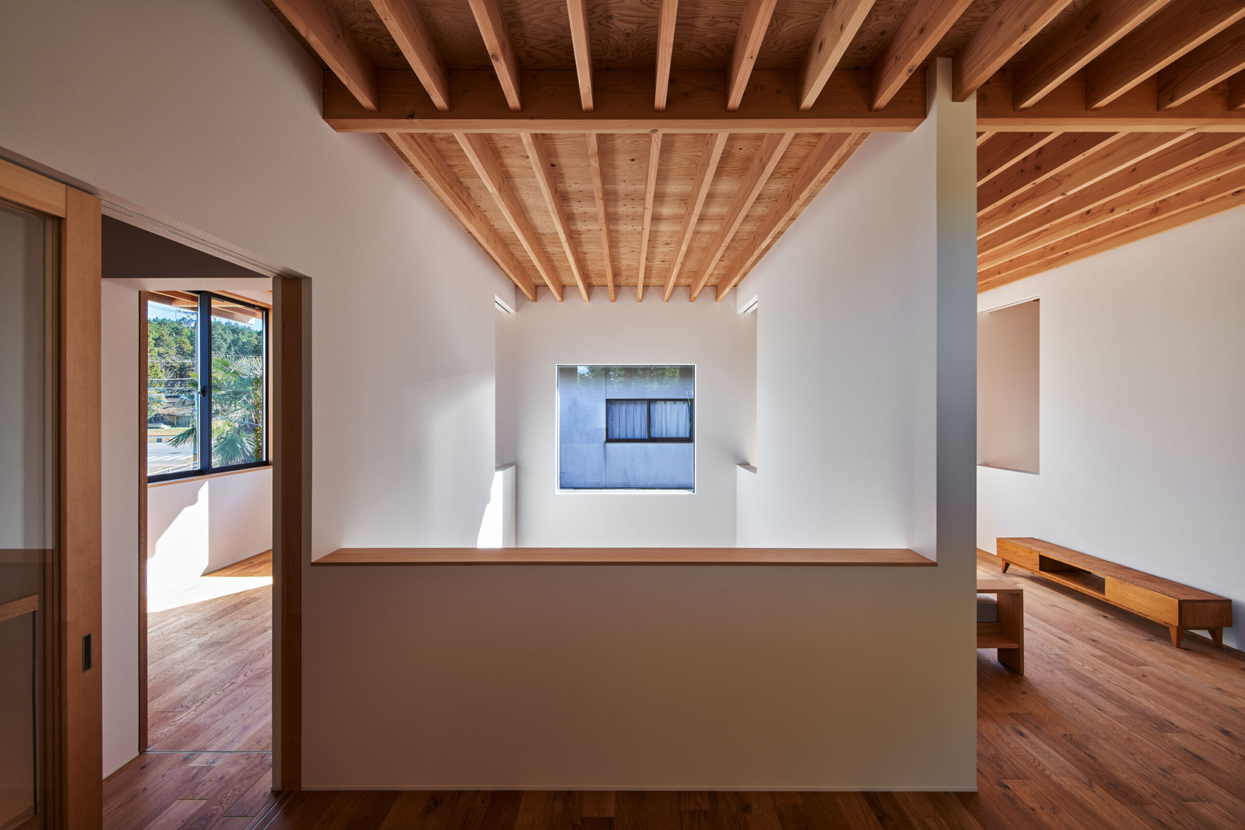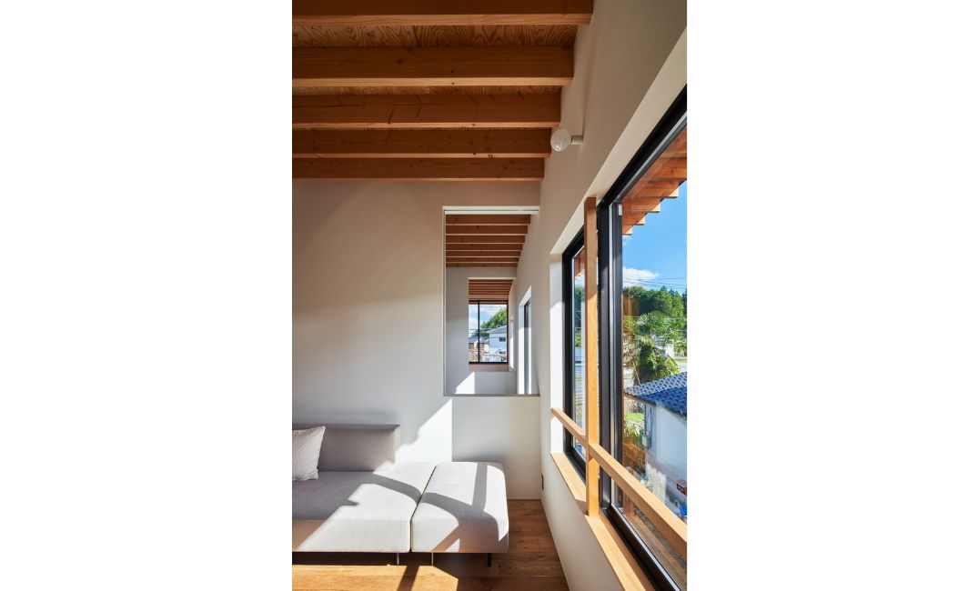 その象徴的な部分になっているのが、吹き抜けや視線の抜ける窓のようにくり抜かれた壁面です。