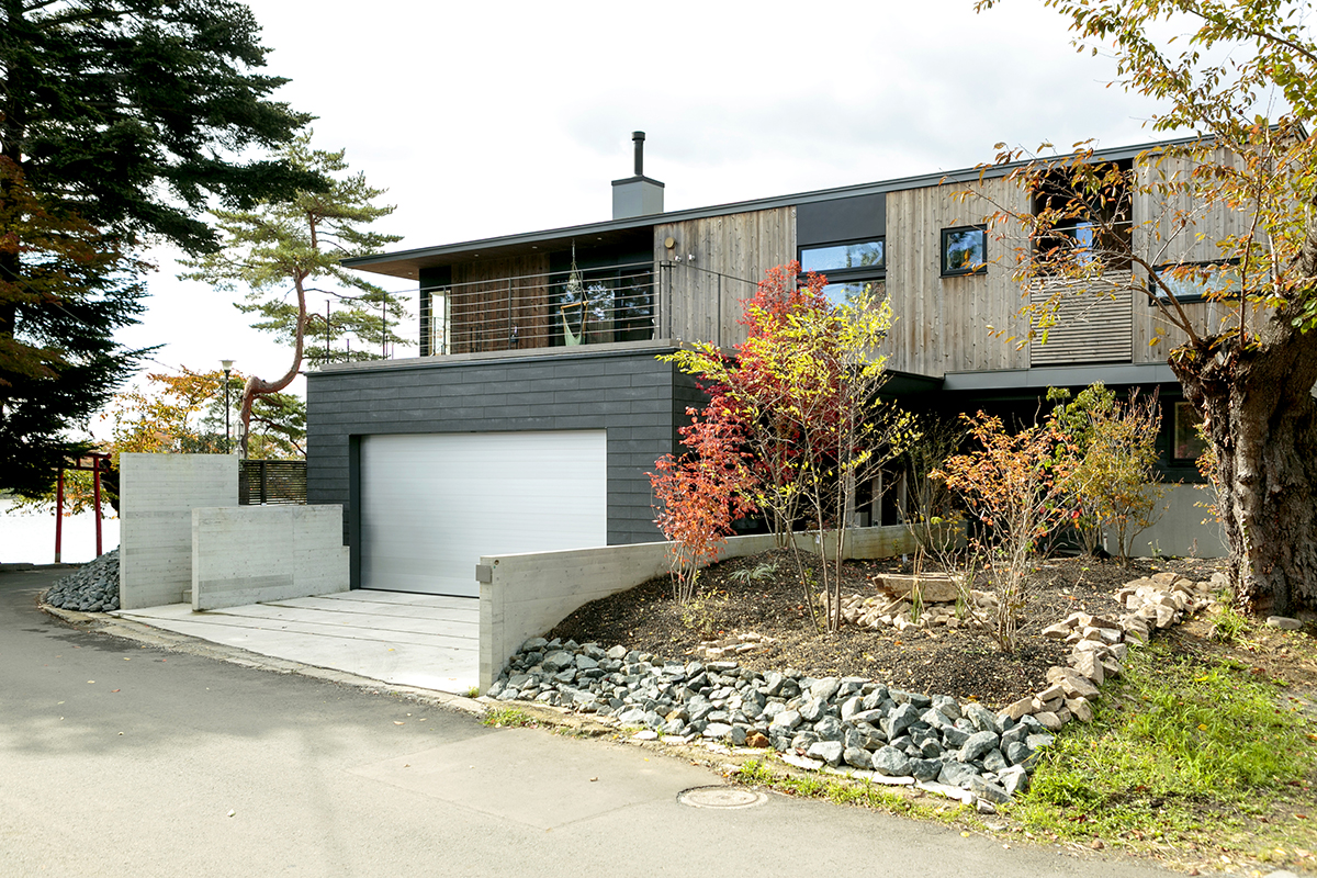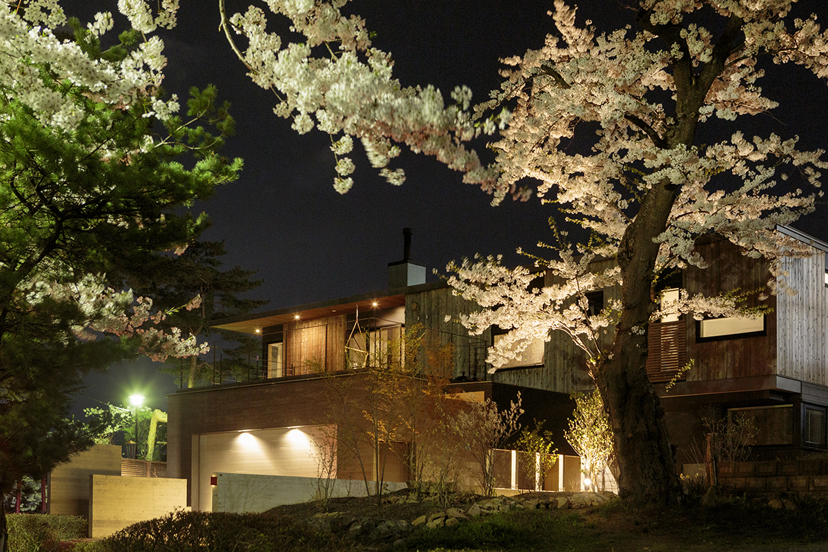 『湖畔の家』は敷地内に桜の木があり、浴室からそれを眺められるように計画しました。