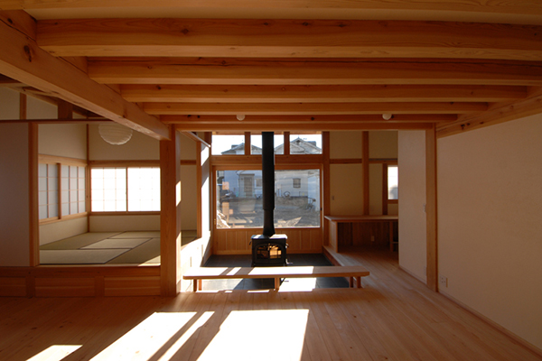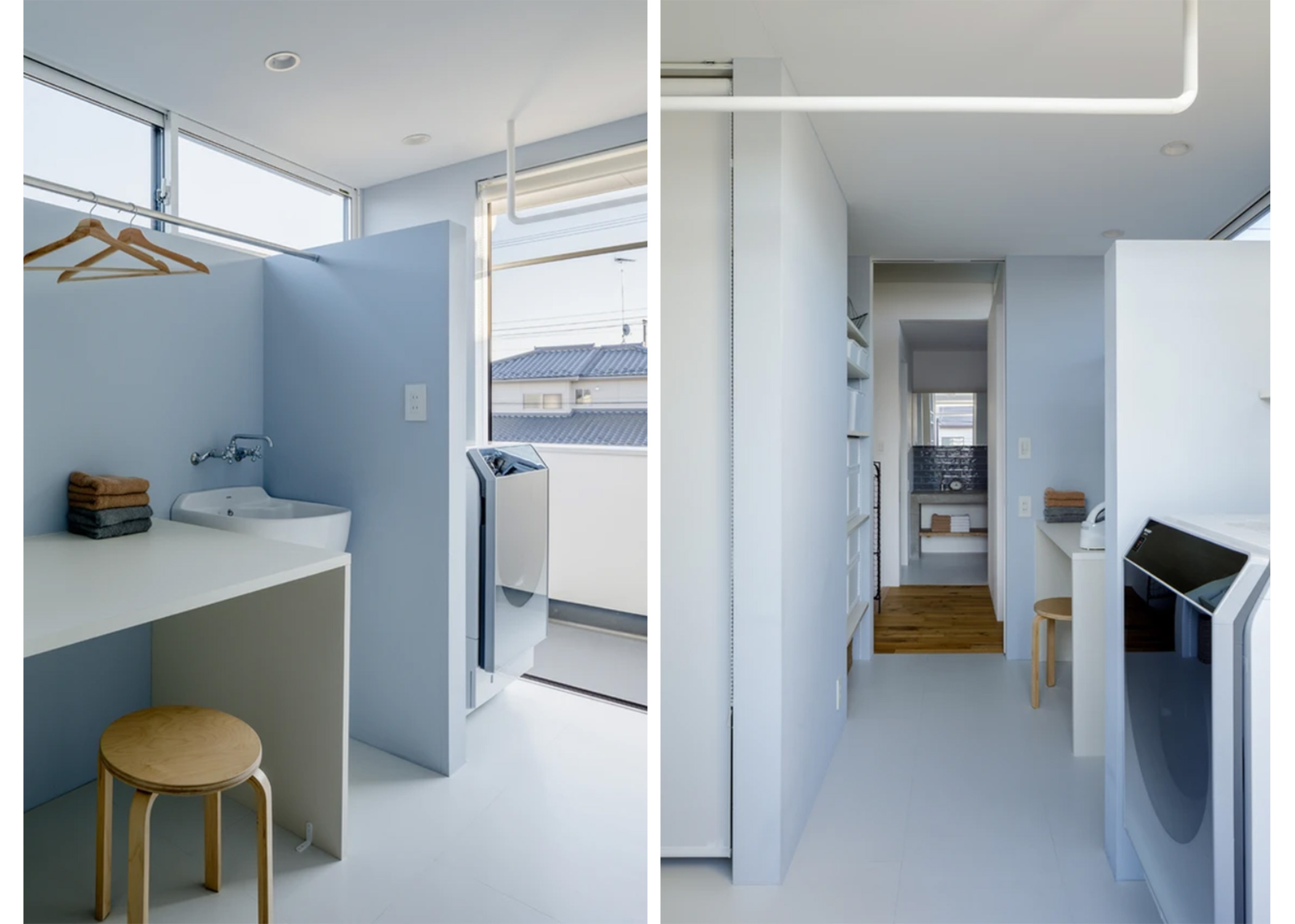 洗面所とバルコニーの間にサンルームを設置。室内と室外干しができる設計になっています。