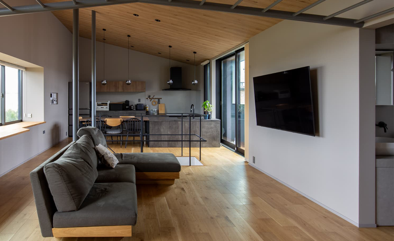 サンルームには洗濯機、スロップシンク、アイロン掛けや洗濯が畳める机が並び、洗濯を終えた洋服はすぐに片付けられるよう、収納棚も設置。同じ空間で「洗う」、「干す」、「取り込む」、「アイロンがけ」、「収納」まで完結できる設計です。
