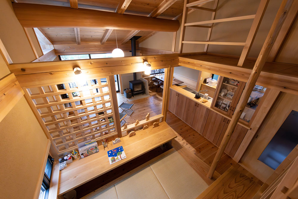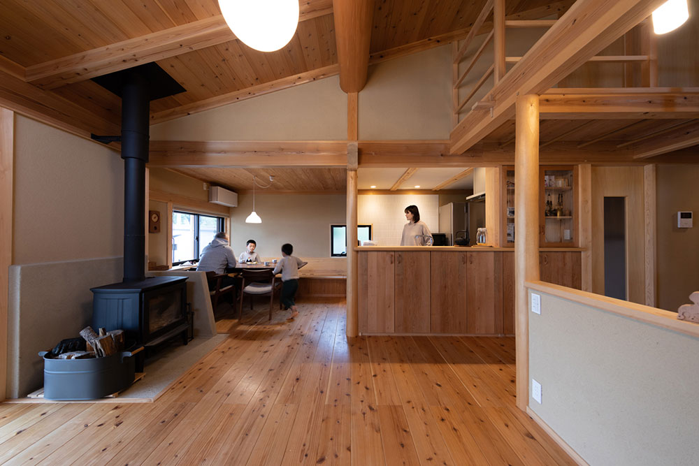 そして住宅全体の天井を低くし、壁は作らず空間を繋げることで、2階にいても1階に家族と目線が合わせられる距離感を大切に設計をしました。