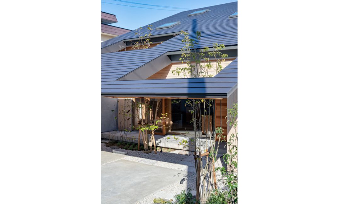 また、屋根に設けた開口は採光や通風、室内からの見晴らしといった面だけではなく、建蔽率の条件をクリアする役割も担っています。開口部分は面積に入らないので、有効に使いながら建蔽率の制限内におさめることができました。