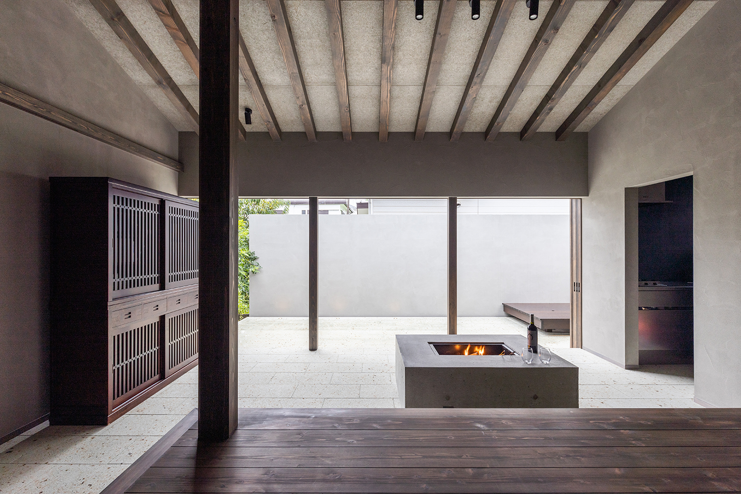 四方を建物に囲まれた住宅地でも、外部からの視線を気にせずに自由にくつろげる場所は、夫婦や仲間と過ごす贅沢空間となっています。