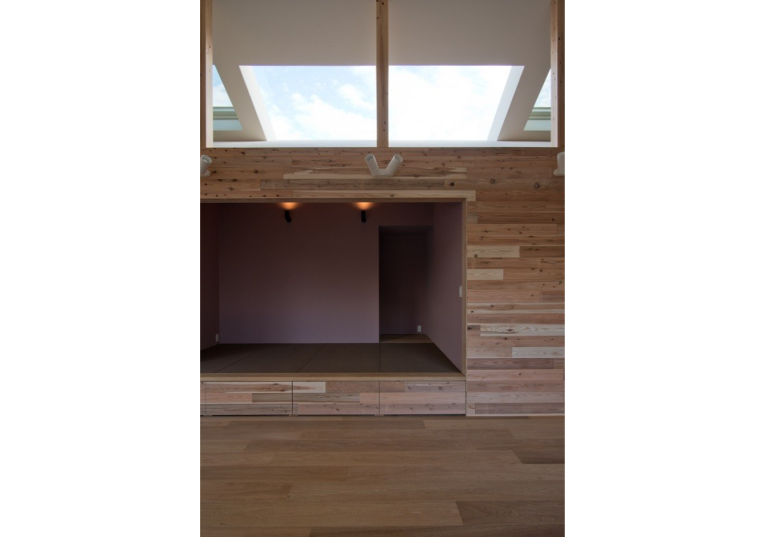 この課題に対処するため、天窓を4つ設置することで、外からの視線を気にせず、室内に豊かな光を取り入れる設計としました。