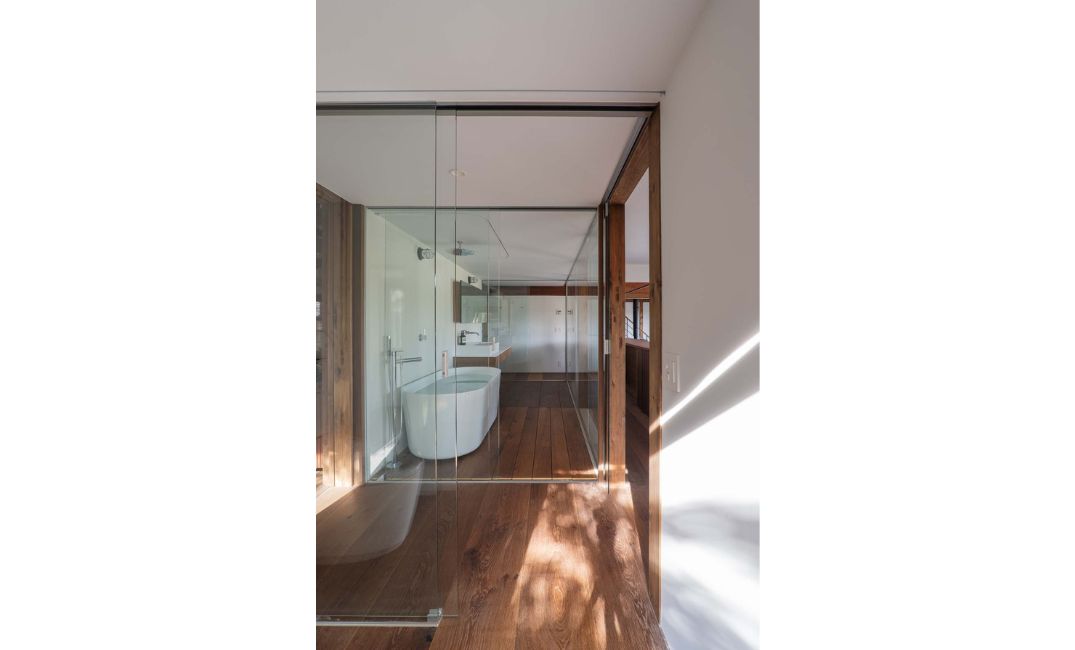 プロの住宅レシピ 光と景色を採りこむガラス張りのバスルーム