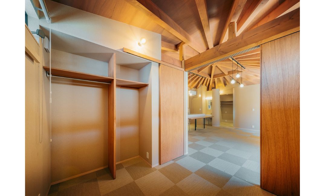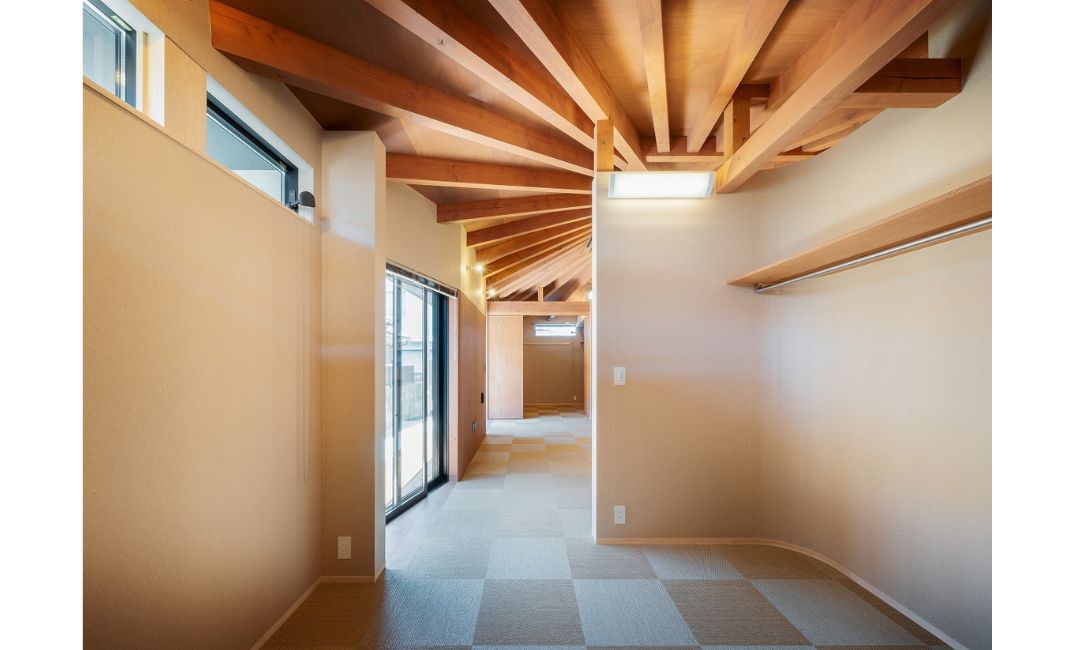 現(あらわ)しになった天井が特徴的な『一室の家』は施主の方がお母様と二人暮らしをされる家です。