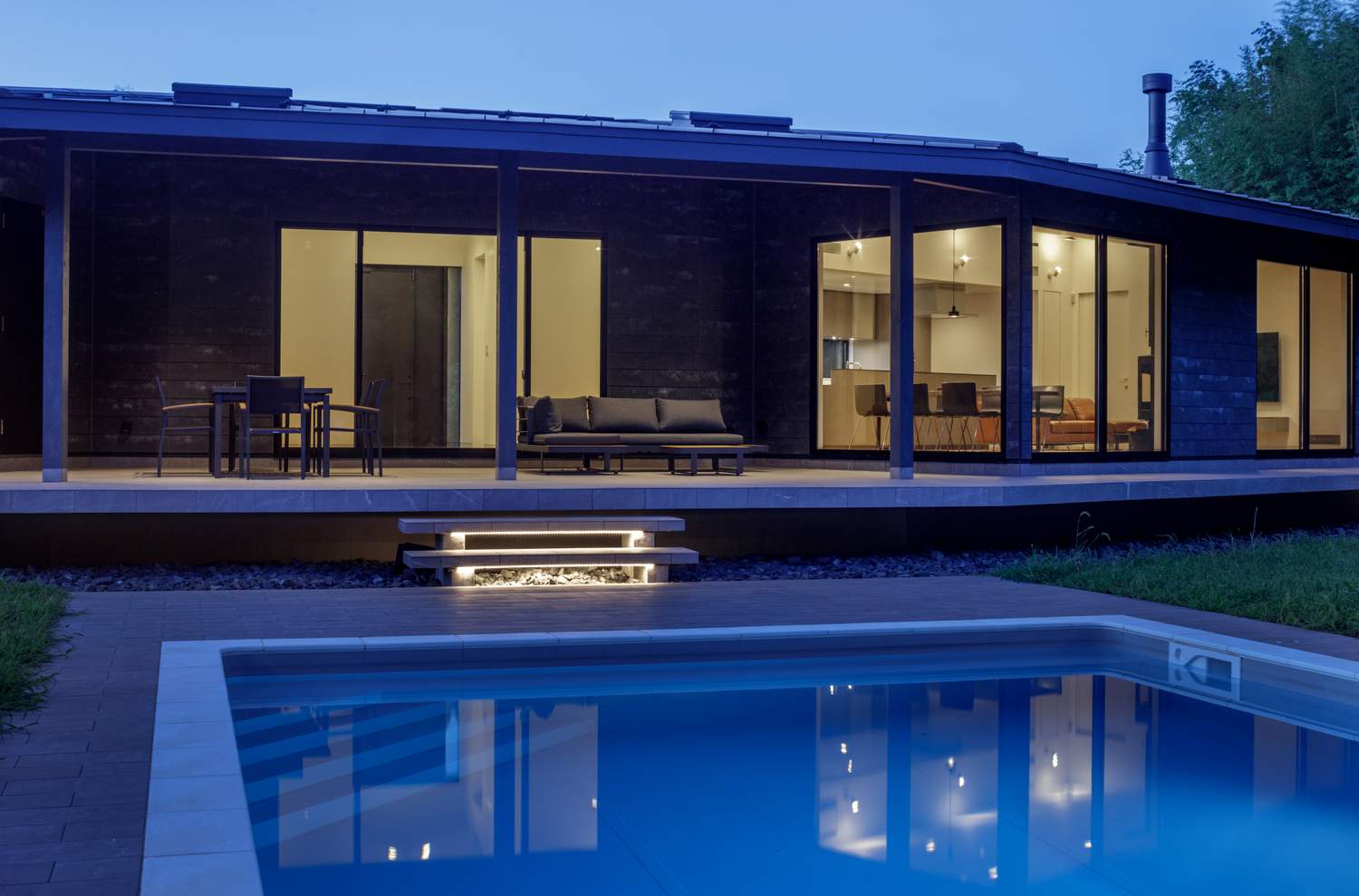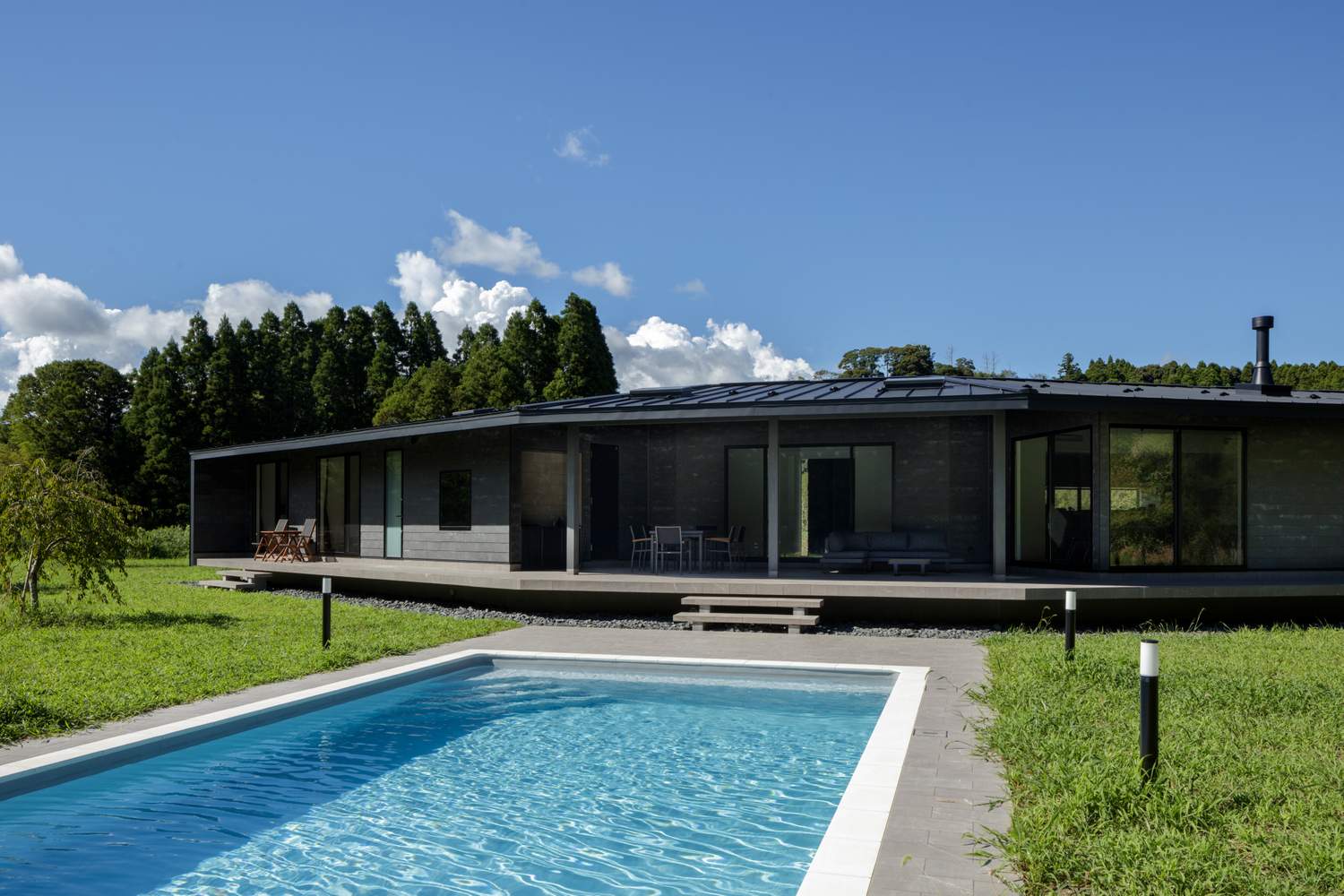 『長南町のヴィラ』の施主の方はフランス人と日本人のご夫婦で、広い屋外スペースは必須との要望をお持ちでした。特にご主人はフランスの南の地域のご出身で、一日の大半の時間を屋外で過ごすのが自然というライフスタイルでした。
