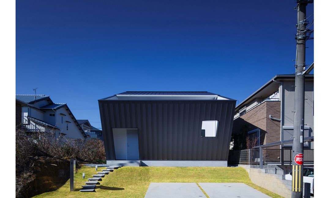 『/(スラッシュ)』は外壁を道路側に向けて傾けた建物です。これは敷地の条件から生まれた、採光とプライバシーの両方を確保するための形です。