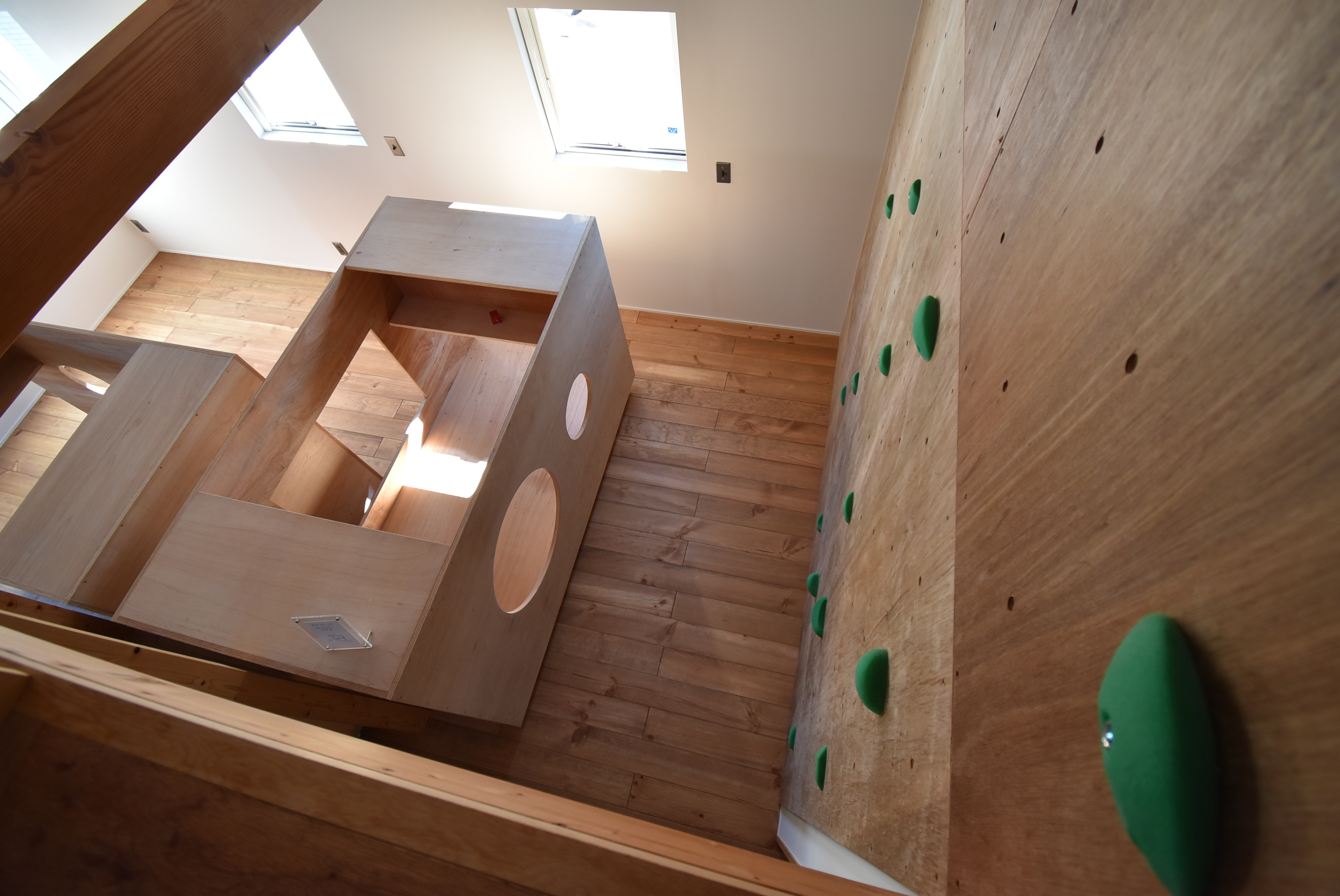 また、親御さんは子供が大好き、自分たちも一緒に遊びたい、という要望をお持ちでしたのでロフトやボルダリングの壁面など一緒になって楽しめる場も設けました。そして、いずれ子供達が成長し、巣立った際には、この使い方が限定されない空間を大人のためのスペースとして使えるように、と意図しています。