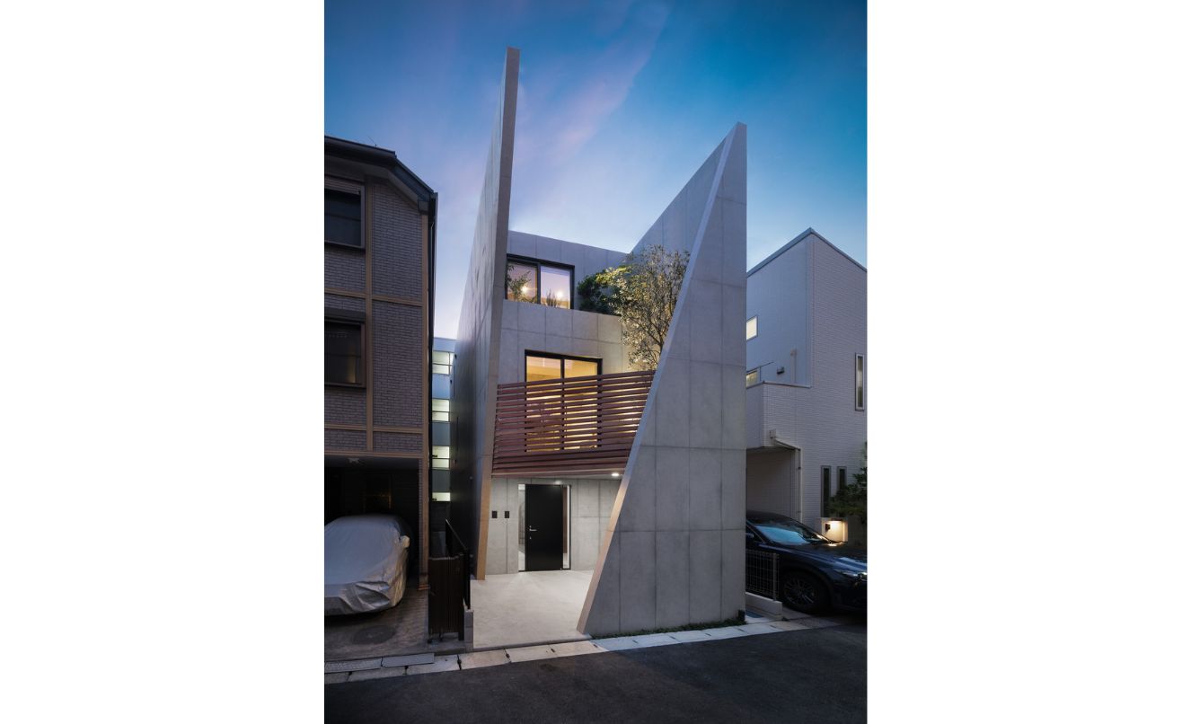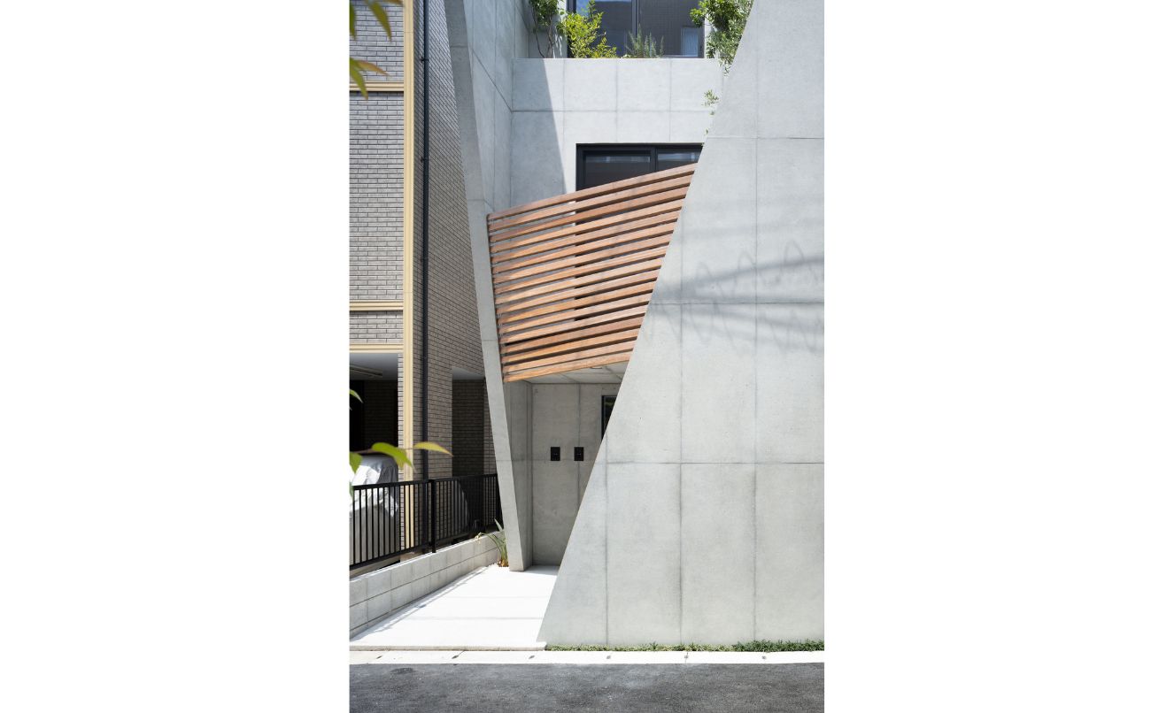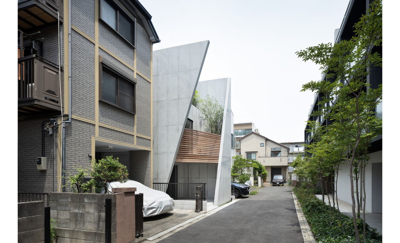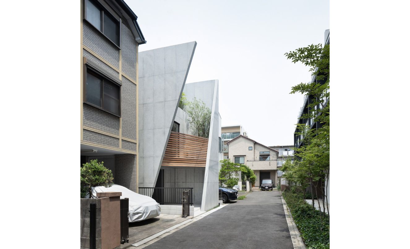 また、小さな土地が多く、室外機、配管、電気メーターなどが行き場なく道路側に表出し、緑化スペースもあまり取れない、というのが実情です。この街並みの課題に向き合った作品が自宅兼事務所の『VALE(ベイル)』です。
