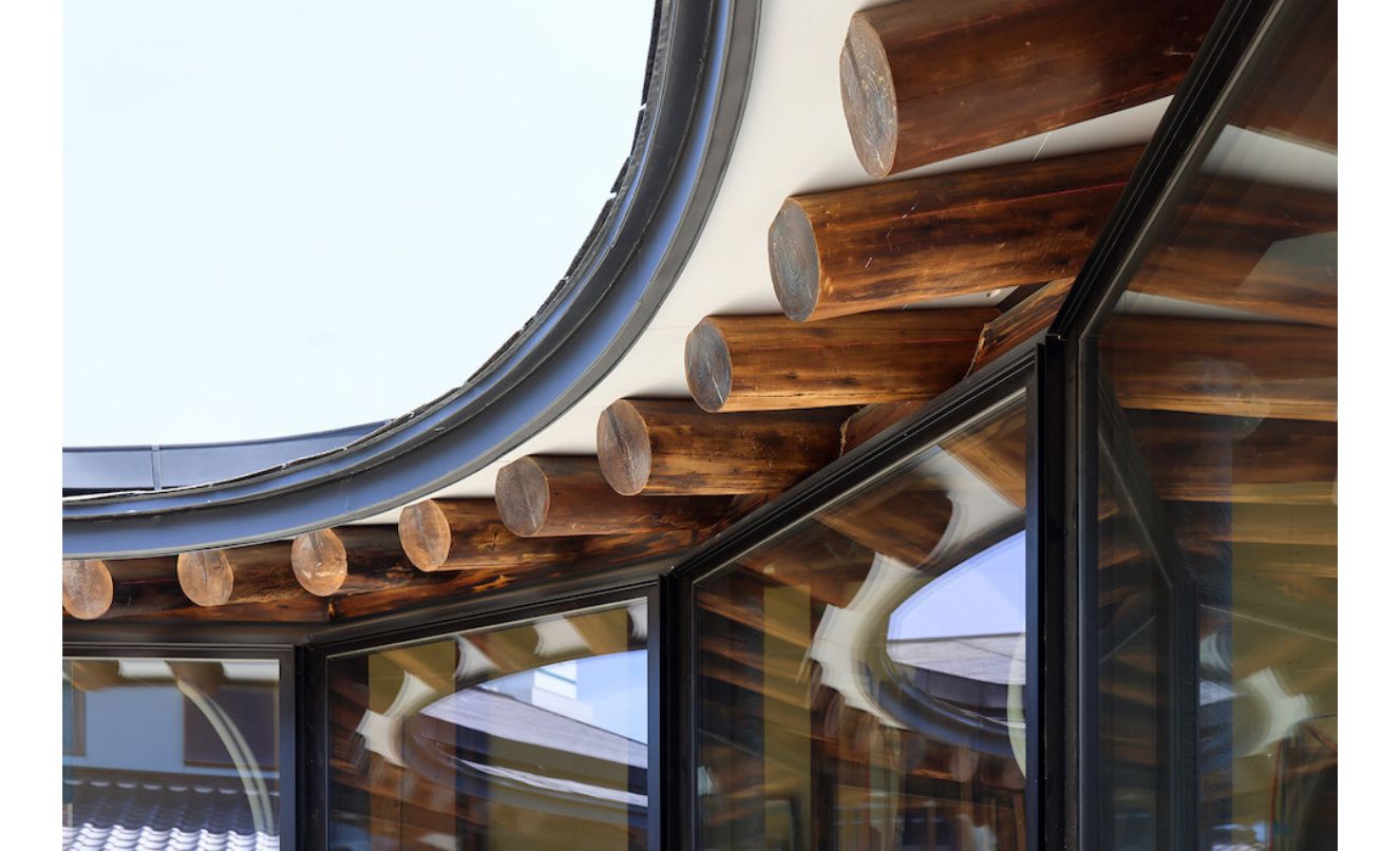 『炙り丸太のコロネード』は幹線道路の近くに位置する住宅です。周囲の喧騒を避け、プライバシーを守るため、前庭ではなく中庭という選択をしました。