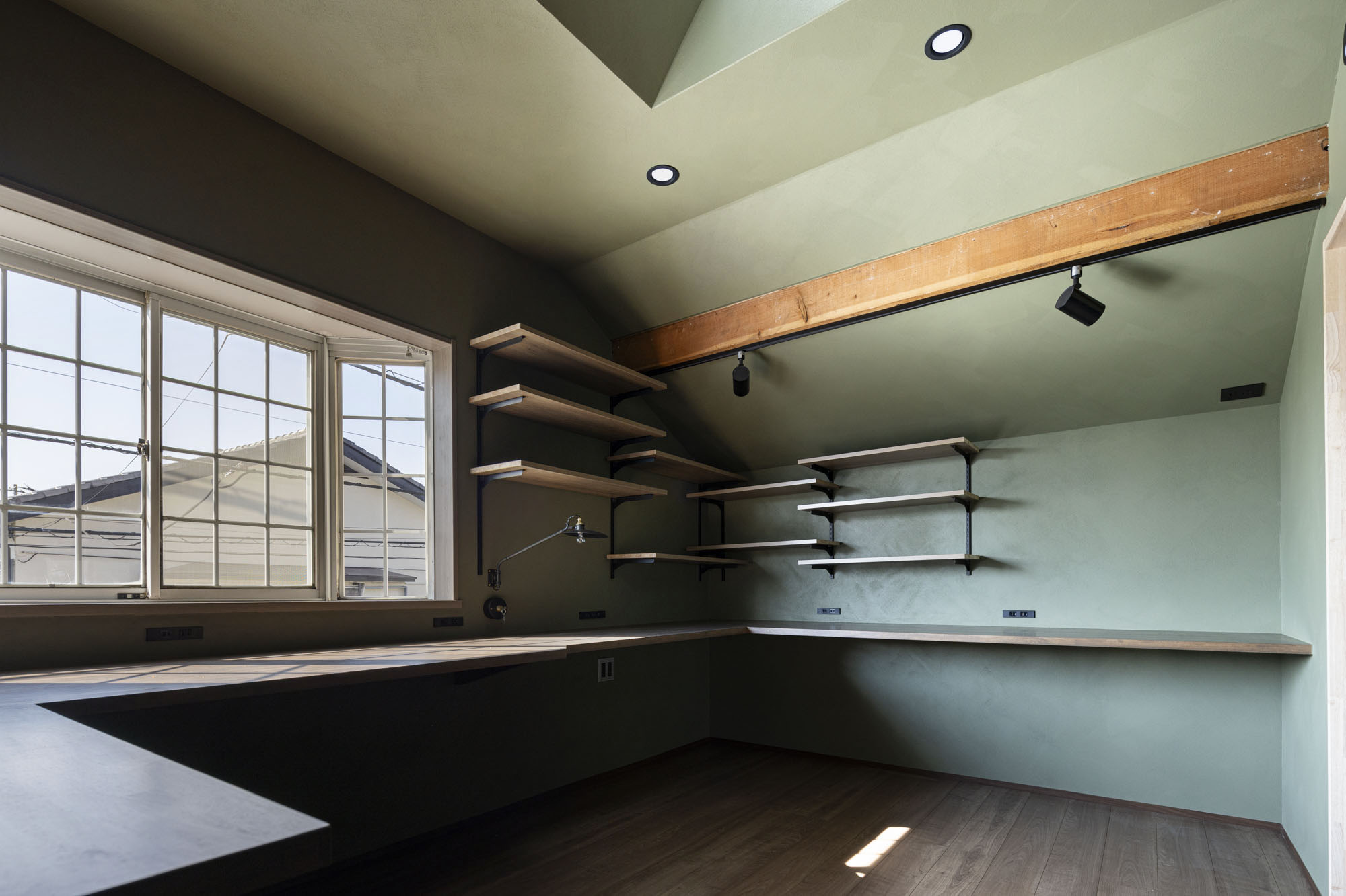 二階にはご夫婦のセカンドリビングとワークスペースを設け、オンラインミーティングが重なっても支障が出ないように引き戸を採用するなど、細かな配慮をしています。